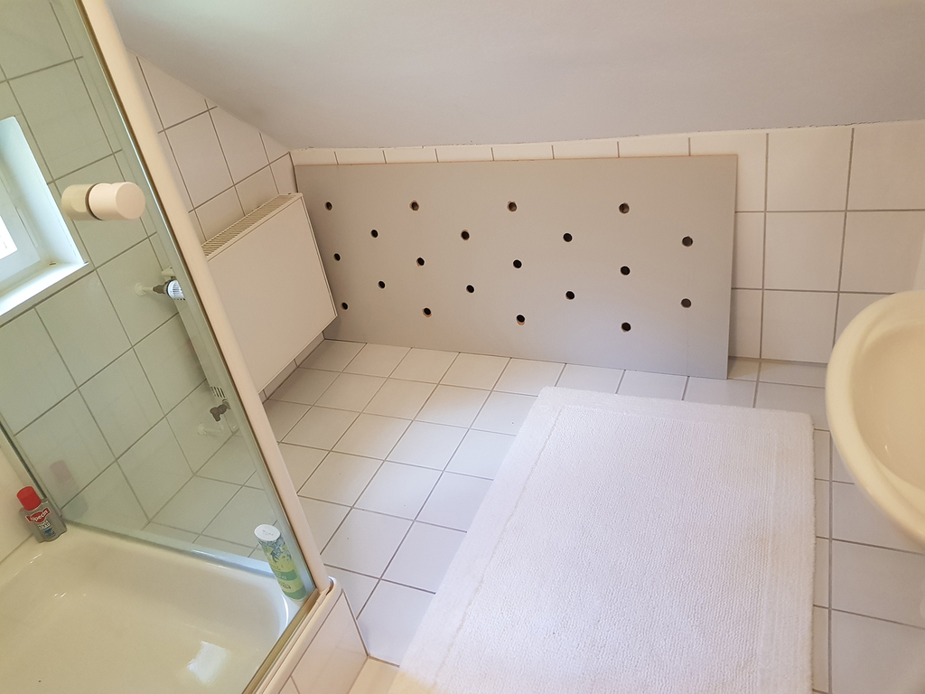 Nasszellen: alle weiß gefliest, teils deckenhoch