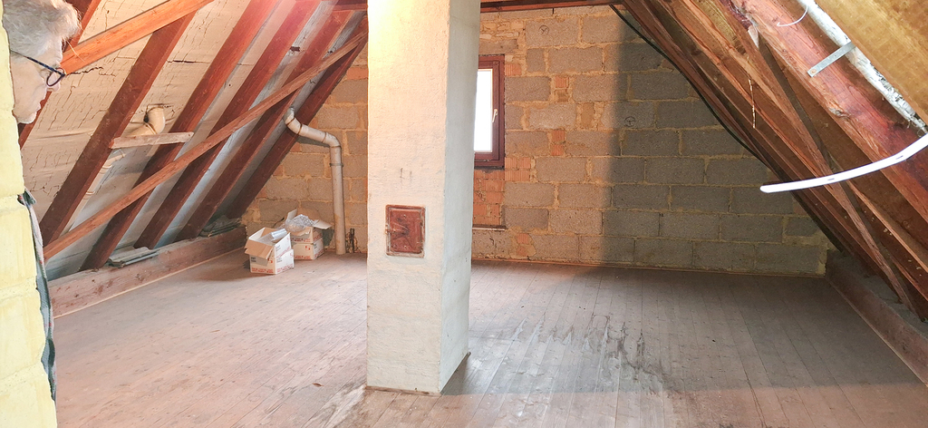 Der Spitzboden kann ausgebaut werden, Heizungs- und Entwässerungsanschlüsse für sanitäre Anlagen liegen bereits vor.